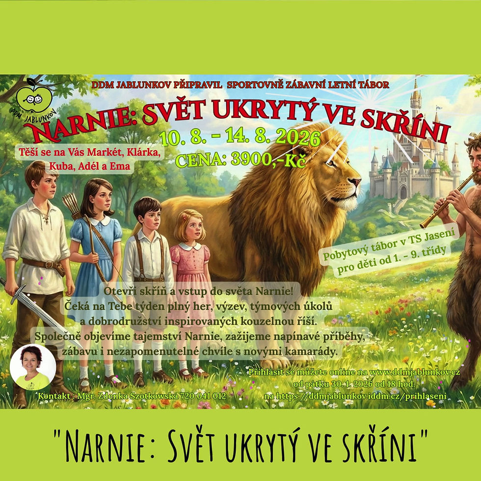 Čarodějná škola hudby a kouzel – pondělní den na příměstském táboře. Děti čeká celodenní tématický program inspirovaný světem Harryho Pottera spojený s hudebním doprovodem. Po zahájení v „Bradavicích“ budou děti rozděleny do kolejí, ve kterých budou po celý den spolupracovat. Program zahrnuje tvořivé dílny (výroba hůlek, plakátů a kolejních znaků), hudebně-rytmické hry s nástroji, pohybové aktivity na filmovou hudbu i relaxaci. Po obědě si děti poslechnou krátkou ukázku z knihy Harry Potter a Kámen mudrců, naváže kvíz malých kouzelníků a pátrací hra „Tajná chodba Bradavic“ s úkoly v různých prostorách. Den bude zakončen vyhodnocením, předáním diplomů a závěrečnou relaxací s bublinkovou magií. S sebou: děti si mohou vzít oblíbený „kouzelný“ předmět (plyšák, hračka, drobný hudební nástroj apod.) Program je veden hravou formou, podporuje spolupráci, tvořivost a pozitivní zážitek dětí.