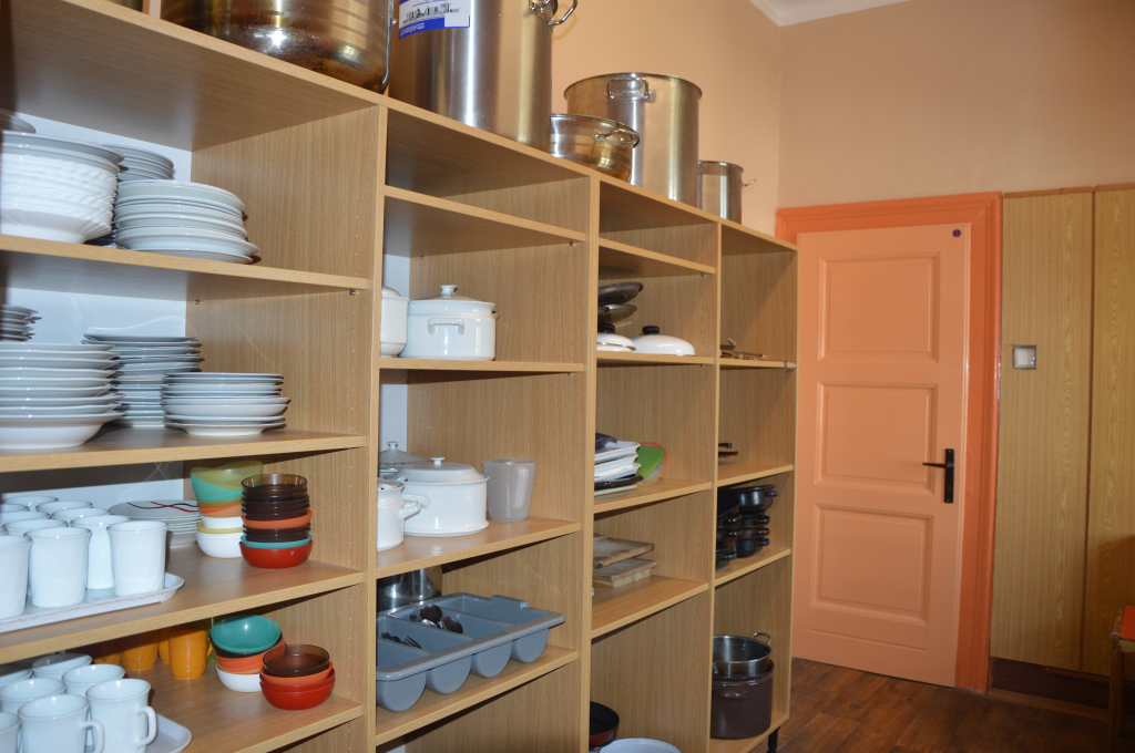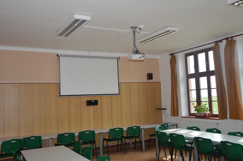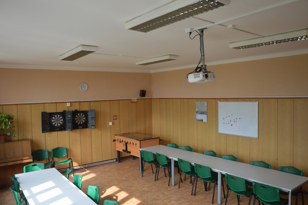 Slouží jako jídelna i společenská místnost. Nachází se zde stoly, židle, klavír, fotbálek, dataprojektor s plátnem, HDMI.