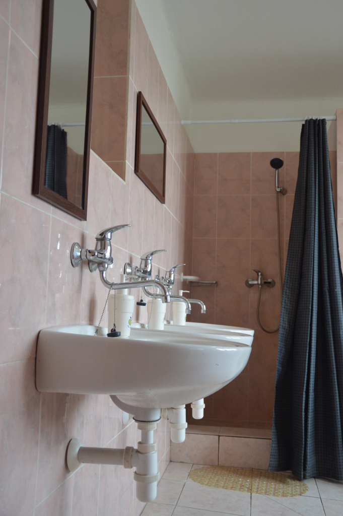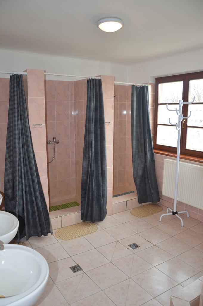 WC (chlapci) splachovací + 2 pisoáry, WC (dívky) splachovací, umyvadla, 3 sprchy s teplou a studenou vodou, 3 umyvadla s teplou a studenou vodou. POZOR! Celý objekt je zásobován vodou z vlastního zdroje, proto je nutné vodou šetřit!